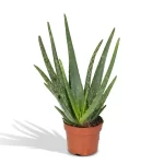De Aloë Vera heeft dikke, vlezige bladeren die water opslaan en een rozet vormen. De bladeren zijn groen tot grijsgroen van kleur en hebben kleine tandjes langs de randen. Deze succulent is wereldwijd bekend om zijn helende eigenschappen. Afkomstig uit de droge gebieden van Noord-Afrika en het Arabisch schiereiland, gedijt deze plant uitstekend als kamerplant en voegt een natuurlijke uitstraling toe aan elke ruimte.