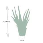 Deze plant heeft veel licht en kan direct zonlicht verdragen nodig en weinig water – laat de grond volledig opdrogen tussen gietbeurten. Overbewatering vermijden om wortelrot te voorkomen. In de winter nog minder water geven. Met de juiste verzorging zal deze Aloë Vera van 40cm in een Ø12cm pot prachtig gedijen in jouw huis.