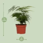 Deze plant heeft helder indirect licht – direct zonlicht kan verbranding veroorzaken nodig en regelmatig water – houd de grond licht vochtig. Regelmatig besproeien voor extra luchtvochtigheid. Gele takjes wegknippen voor een frisse uitstraling. Met de juiste verzorging zal deze Asparagus Setaceus van 35cm in een Ø12cm pot prachtig gedijen in jouw huis.