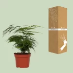 De Asparagus Setaceus heeft zeer fijne, naaldvormige bladeren die een wolkachtige, delicate uitstraling geven. Deze plant heeft een luchtige groeiwijze en kan zowel rechtop als hangend groeien. Afkomstig uit Zuid-Afrika, gedijt deze plant uitstekend als kamerplant en voegt een natuurlijke uitstraling toe aan elke ruimte.