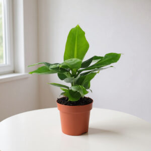 De Asplenium Antiquum, ook bekend als Vogelnest Varen, heeft grote, glanzende bladeren die in een rozet groeien. De bladeren zijn leerachtig en hebben een frisse, groene kleur. Afkomstig uit de tropische regenwouden van Azië en Australië, gedijt deze plant uitstekend als kamerplant en voegt een natuurlijke uitstraling toe aan elke ruimte.