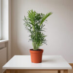 Deze plant heeft halfschaduw tot schaduw – verdraagt weinig licht uitstekend nodig en regelmatig water – houd de grond licht vochtig maar niet doorweekt. Regelmatig besproeien voor extra luchtvochtigheid. Gele bladeren wegknippen. Met de juiste verzorging zal deze Chamaedorea Elegans van 40cm in een Ø12cm pot prachtig gedijen in jouw huis.