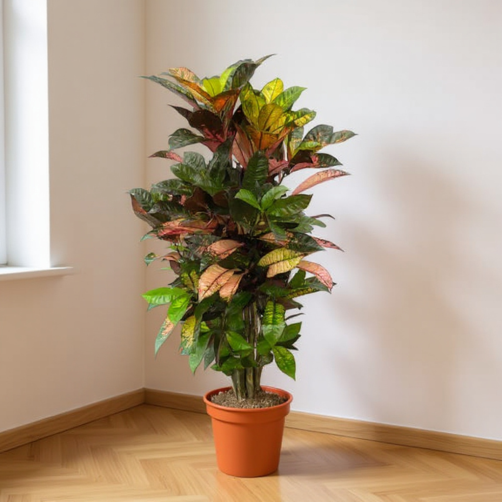De Codiaeum (Croton) Iceton draagt bij aan een gezonder binnenklimaat door zijn luchtzuiverende eigenschappen.
