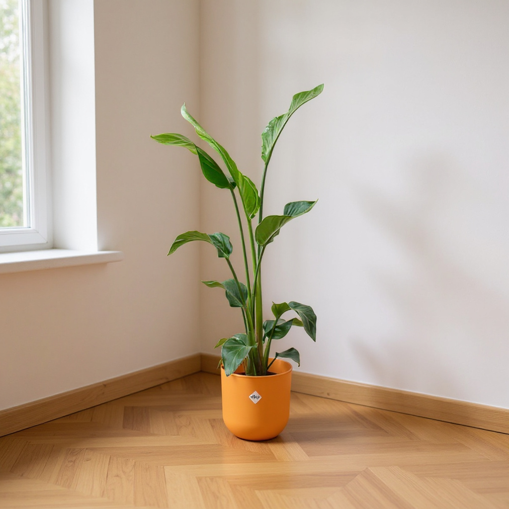 Deze combideal bevat een Strelitzia Nicolai kamerplant van 100cm hoog met een potdiameter van 23cm, gepresenteerd in een stijlvolle elho Jazz Round pot in geel. De Strelitzia Nicolai, ook bekend als de Paradijsvogelplant, heeft grote, groene bladeren die de vorm van een waaier hebben. De elho Jazz Round pot met zijn elegante, ronde vorm en moderne uitstraling, voegt een stijlvolle toevoeging toe.