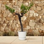 De Druivenboom (Vitis Vinifera) heeft een indrukwekkende, vertakte stam met rijke groene bladeren die een volle, weelderige uitstraling creëren. In de zomer kunnen er trossen druiven aan de plant verschijnen, wat niet alleen prachtig is, maar ook heerlijk fruit oplevert.