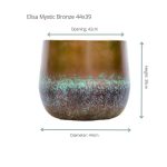 De Elisa Mystic Bronze pot heeft een unieke uitstraling met een prachtige, bronzen kleur die schittert in het licht. De pot heeft een ovale vorm en een rijke textuur, waardoor hij een luxe uitstraling geeft aan elke ruimte. Met een diameter van 44cm en een hoogte van 39cm is het een stijlvolle toevoeging voor diverse planten.