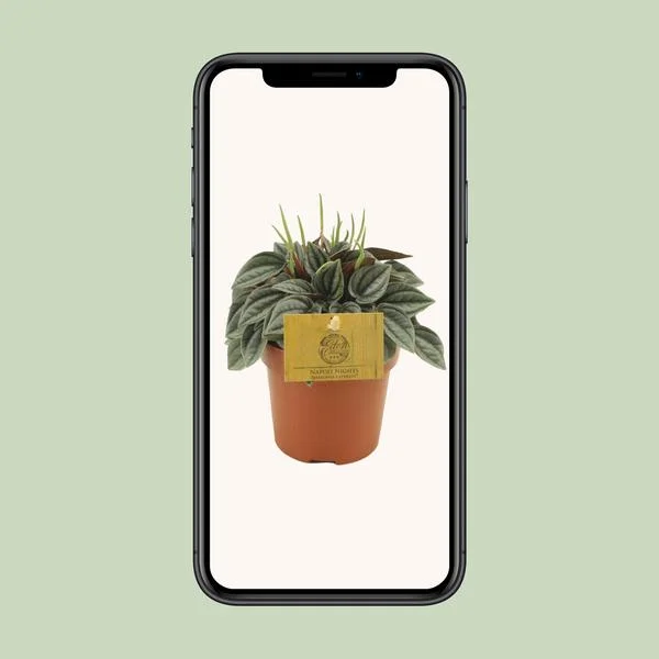 De Peperomia Napoli Nights heeft donkere, bijna zwarte bladeren met een glanzende textuur. Deze compacte plant heeft een moderne, elegante uitstraling. Cultivar van Peperomia uit tropische Amerika, gedijt deze plant uitstekend als kamerplant en voegt een natuurlijke uitstraling toe aan elke ruimte.
