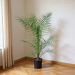 Deze palm houdt van veel zonlicht en kan zowel binnen als buiten staan. Plaats bij voorkeur op een zonnige plek, maar hij verdraagt ook lichte schaduw. Geef de Phoenix Canariensis regelmatig water, vooral in de zomermaanden. Laat de bovenste laag van de potgrond tussen gietbeurten opdrogen en vermijd dat de wortels in stilstaand water staan.