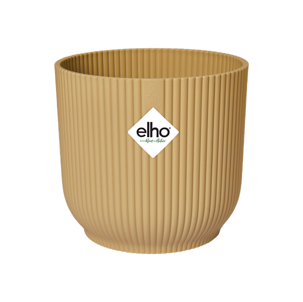 De Elho Vibes Fold Round pot in geel heeft een subtiel geribbeld patroon en een eigentijds, minimalistisch design. De zachte, natuurlijke kleur past in elk interieur en biedt een stijlvol accent voor je planten.